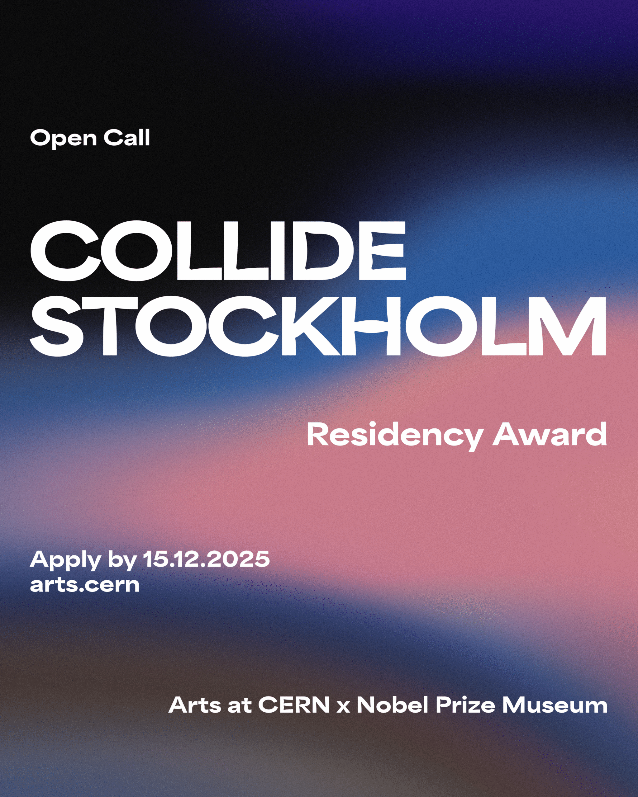 Collide Stockholm invites artists to reflect on the impact of science and research in contemporary culture and society. Artists worldwide are invited to submit proposals for a fully funded two-month residency. The selected artist will spend one month at CERN, working alongside scientists and engineers, followed by one month in Stockholm to continue their research in collaboration with the Nobel Prize Museum. The residency will culminate in the creation of a new artwork supported by curatorial teams in both Geneva and Stockholm. The artwork will be exhibited at the Nobel Prize Museum.